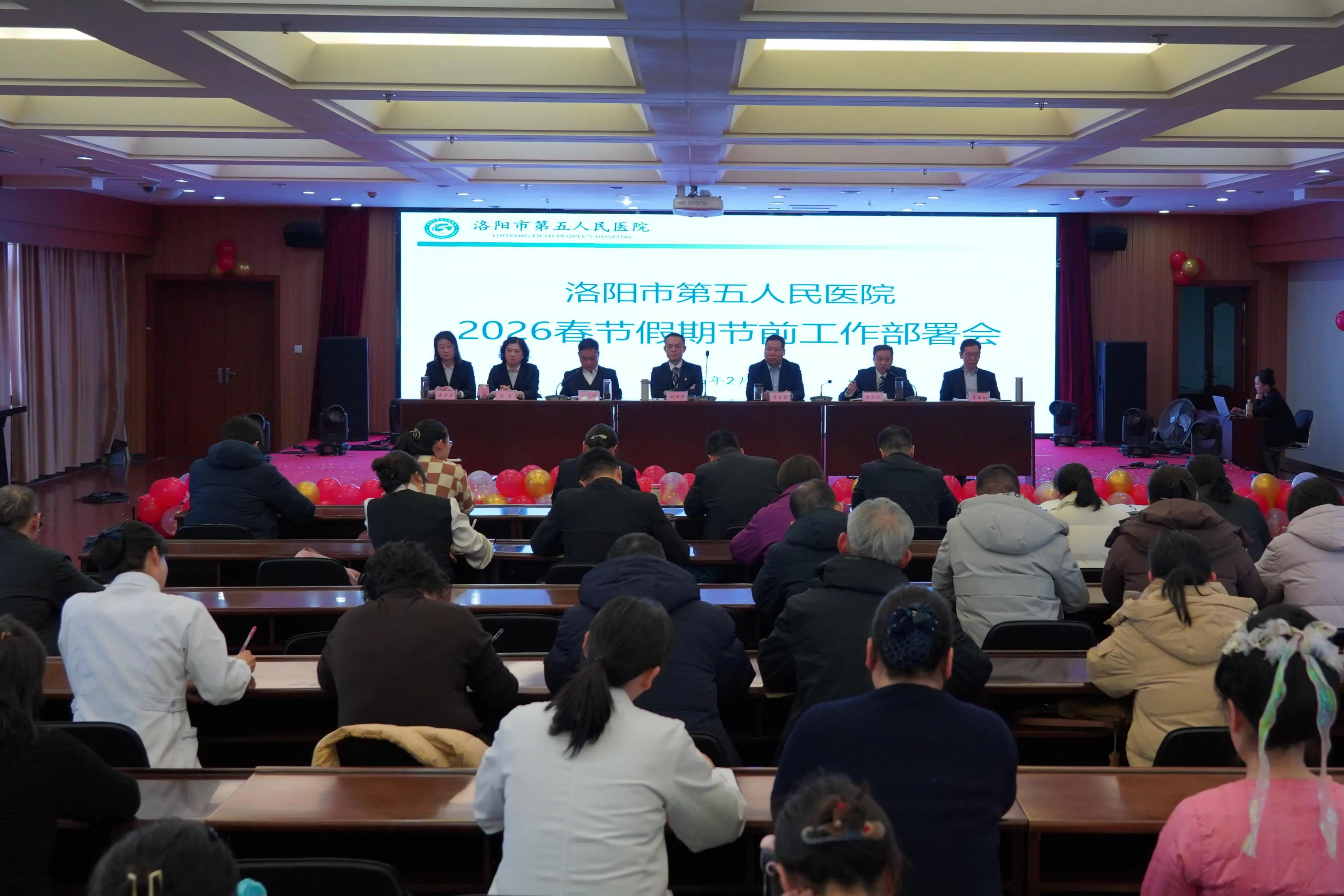 2月10日,洛阳市第五人民医院召开春节期间工作部署会议。医院领导班子成员、各职能科室负责人、各临床医技科室主任、护士长等参加会议。会上,医院业务副院长蒋燕升、连卓、吴本初分别对医院春节期间的医疗安全、门诊运营、安全生产、值班纪律等工作进行了安排。党委副书记马化锋通报了违纪违法典型案例,以案件为警钟,进行警示教育,并传达了医院《关于春节期间严防“四风”的通知》精神,要求各党支部、各科室切实抓好落实,加强人员管理,确保廉洁过节。